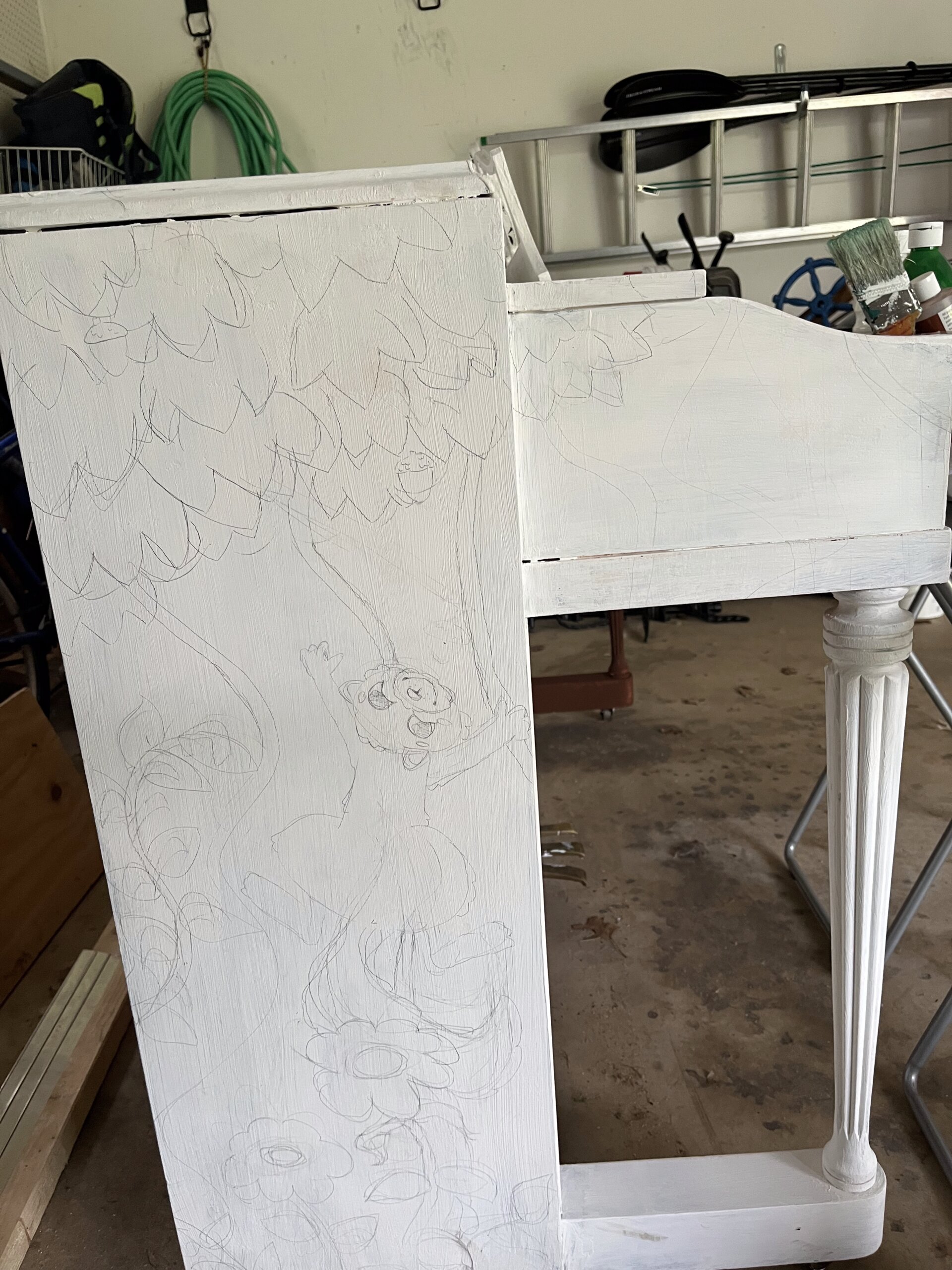 After preparing the surface, outlines were drawn onto the piano surface.
