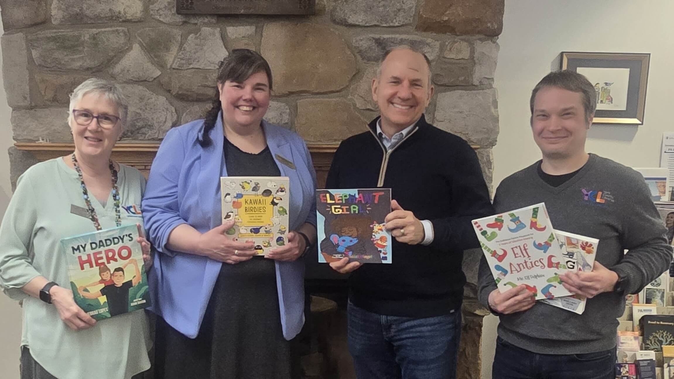 Congressman Lloyd Smucker recently visited Paul Smith Library of Southern York County in Shrewsbury to present a box of books from the Library of Congress. Holding some of the donated books from left to right are York County Libraries Director of Library Relations Ellen Helfrick, Paul Smith Library of Southern York County Director Breanne Brunner, Congressman Lloyd Smucker, and York County Libraries Director of Library Administration John Miller.